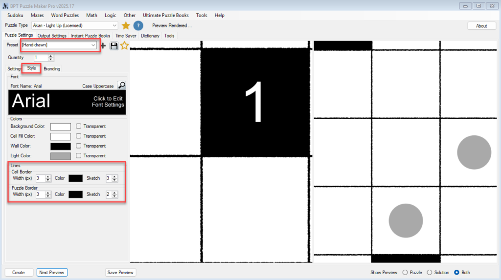 - In the Style tab, locate the Sketch option next to Cell and Puzzle Border lines.
