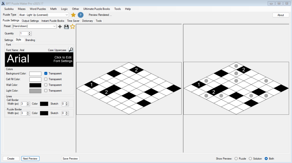 Hand-drawn mode works best for printable puzzles.