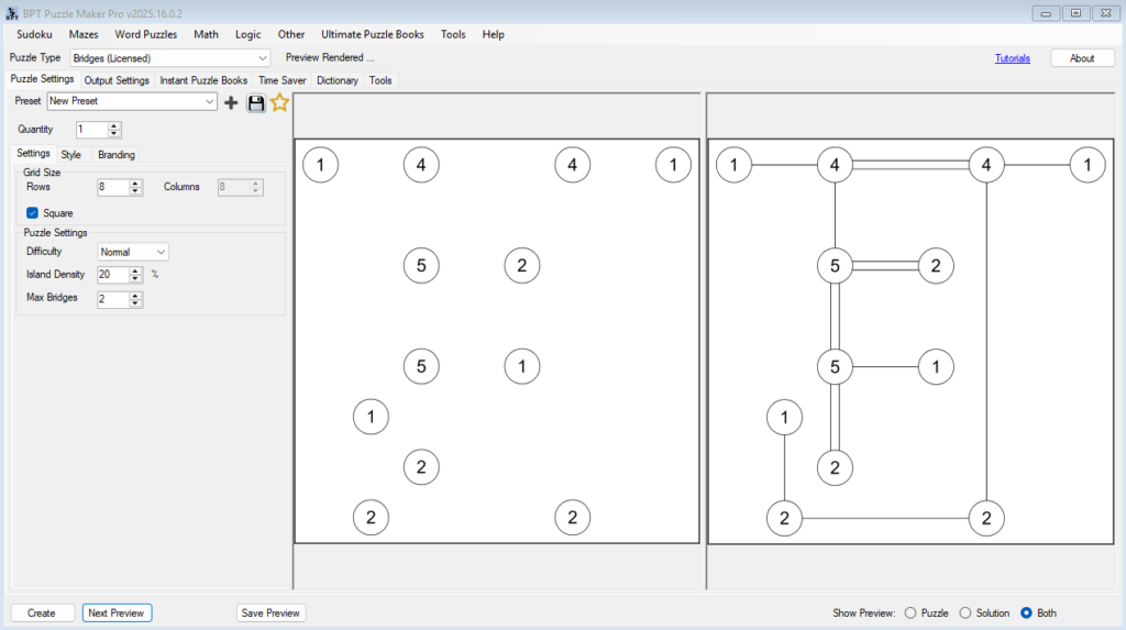 1. Open Puzzle Maker Pro and select Bridges from the puzzle dropdown.