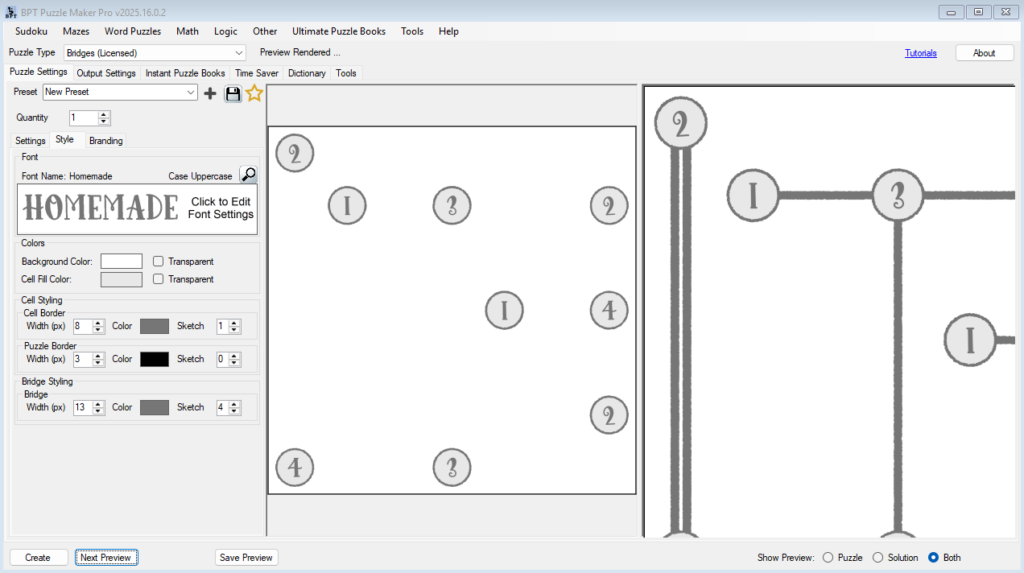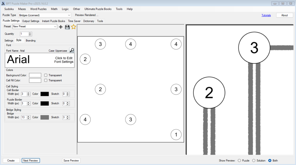 Includes the basic styling options and sketch line settings. - Puzzle Maker Pro – Bridges Creator Edition