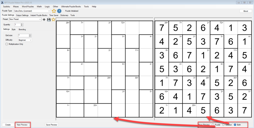 In this tutorial, you’ll learn how to create your first CalcuDoku puzzle — from selecting the grid size and difficulty level to previewing and exporting your results.