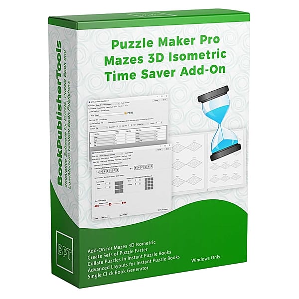 DescriptionWith Mazes 3D Isometric you can create unique and fun 3D mazes and maze puzzle books. There are several built-in maps, including a fully randomized map. For each map the size can be adjusted to taste. You can change the colors, and even link the top and front side colors (shading) to emphasize the 3D effect of the maze. In addition to the visual options, you can control the algorithm that’s used to generate the maze (straight or chaotic and meandering), and the start and end points where you want. | Ease of UseIt’s easy: Just click “Next Preview” or click “Create” and you’ll see a fresh maze using the default settings. To create your own unique maze style, you can change the map and set the colors you want to use for the surfaces, the lines and the solution path. You can also change the way the maze is generated, and even set where you want the start and end points to appear. And finally you can create your own custom map Height Map Editor Add-On or use the Paths Add-On to change the entire look and feel of the maze even more. Immediate AccessYou can use the software right away. Just download and install the newest version of Puzzle Maker Pro from the member area, and start creating your puzzles and puzzle books. Free Demo VersionExperience the power Of Puzzle Maker Pro – Mazes 3D Isometric with our free demo version. Please note that puzzles And solutions In the demo version will be watermarked. You can test all features and puzzle types. If you want to try out the Time Saver Add-On, please contact support. Note: Sales for Puzzle Maker Pro products are final. We strongly suggest to test compatibility with your Windows PC configuration before purchase. |