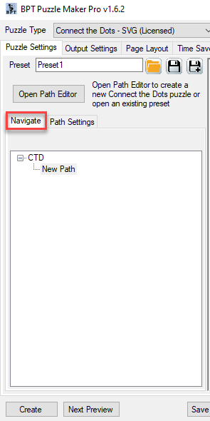 The Path Editor contains tools and options to create the different paths for your puzzle.