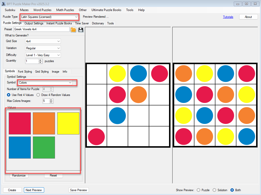 With Puzzle Maker Pro – Latin Squares Creative, you can create color-only logic puzzles, replacing traditional symbols with vibrant, customizable color blocks.