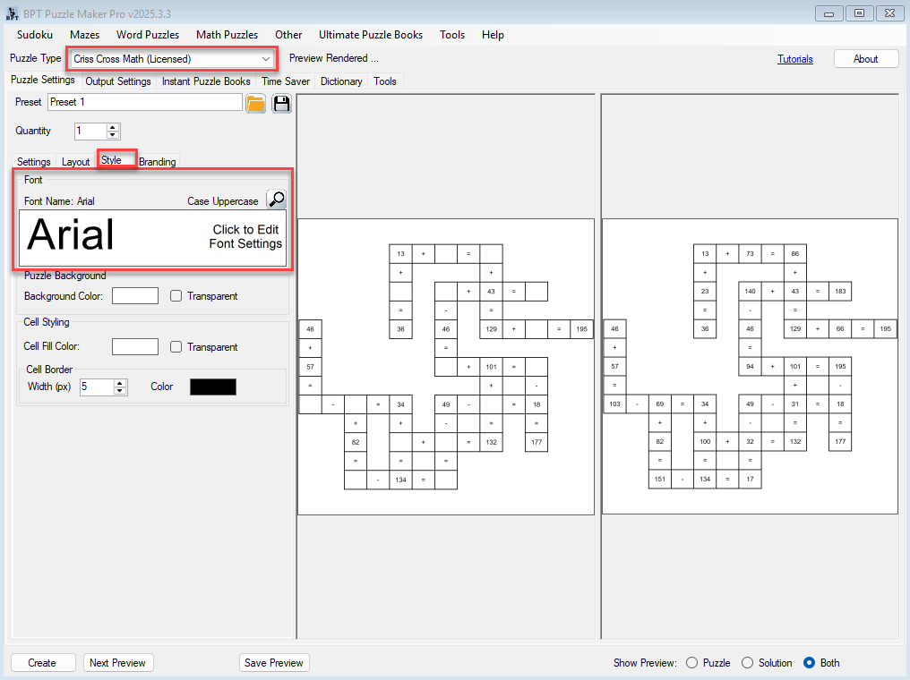 Learn how to style your Criss Cross Math puzzles by adjusting fonts, colors, cell borders, backgrounds, and transparency. This allows you to match your brand, theme, or intended audience.