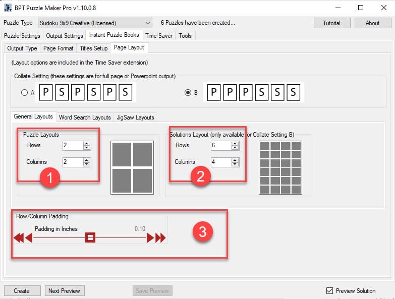We’ll create just 2 pages, with 6 puzzles in total, to illustrate the layout options.