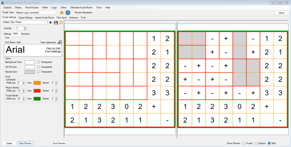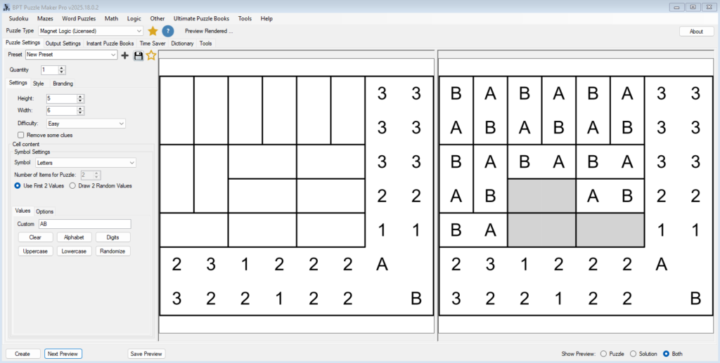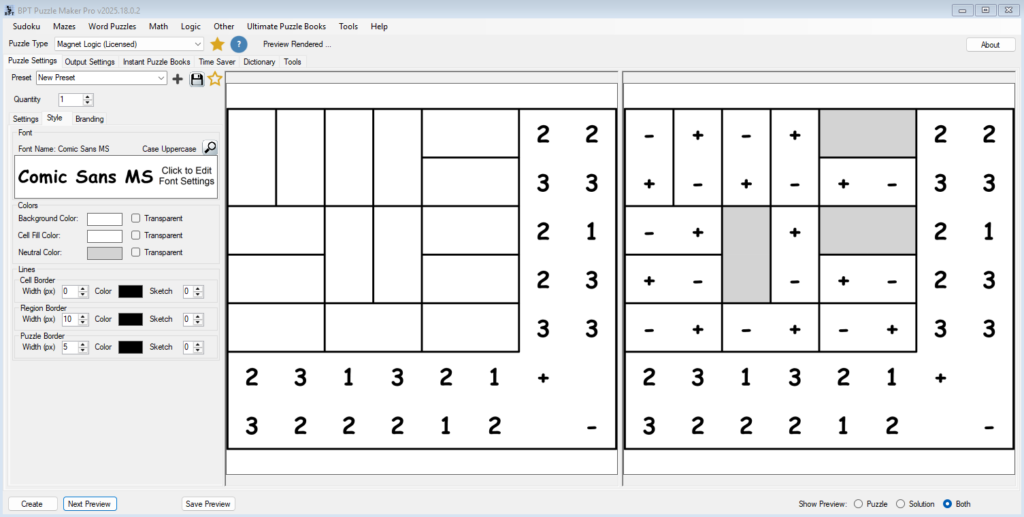 Each new puzzle generated under the same preset will share the same layout and color palette—essential for professional publication or classroom branding.