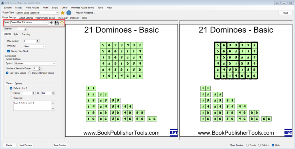 Later, when you use the Time Saver Add-On, these presets allow you to generate hundreds of puzzles with consistent styling automatically.