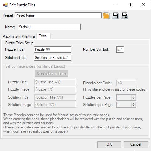 You can edit the Puzzle Title, Solution Title and Number Symbol here. For Automatic book creation, these settings will be identical to the settings in Step 4. For Manual book creation, this is where you should edit the settings.