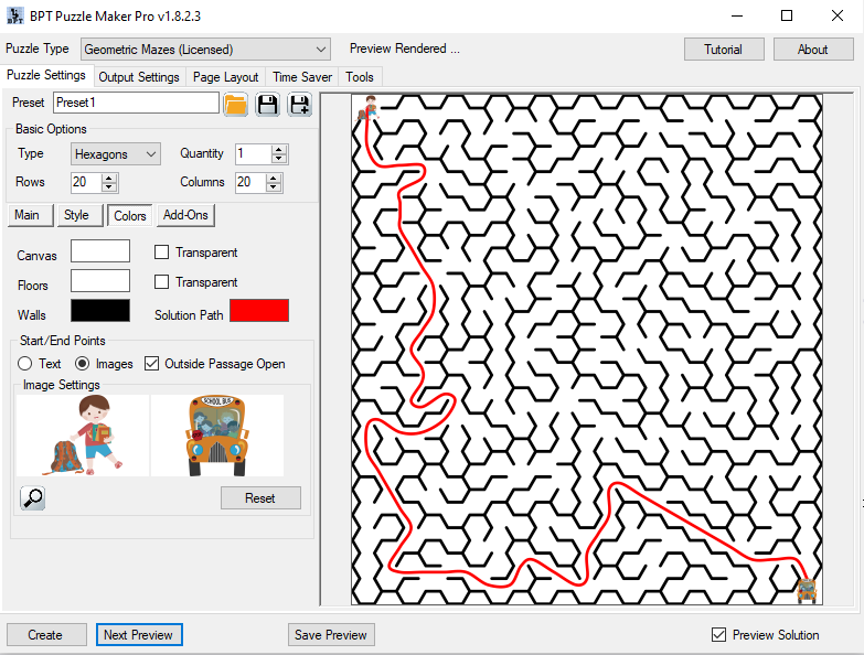 The colors for the Walls and the Solution Path can also be set to any color. Depending on the colors you use, you may need to adjust the Wall Thickness or Solution Line Thickness on the Style tab.