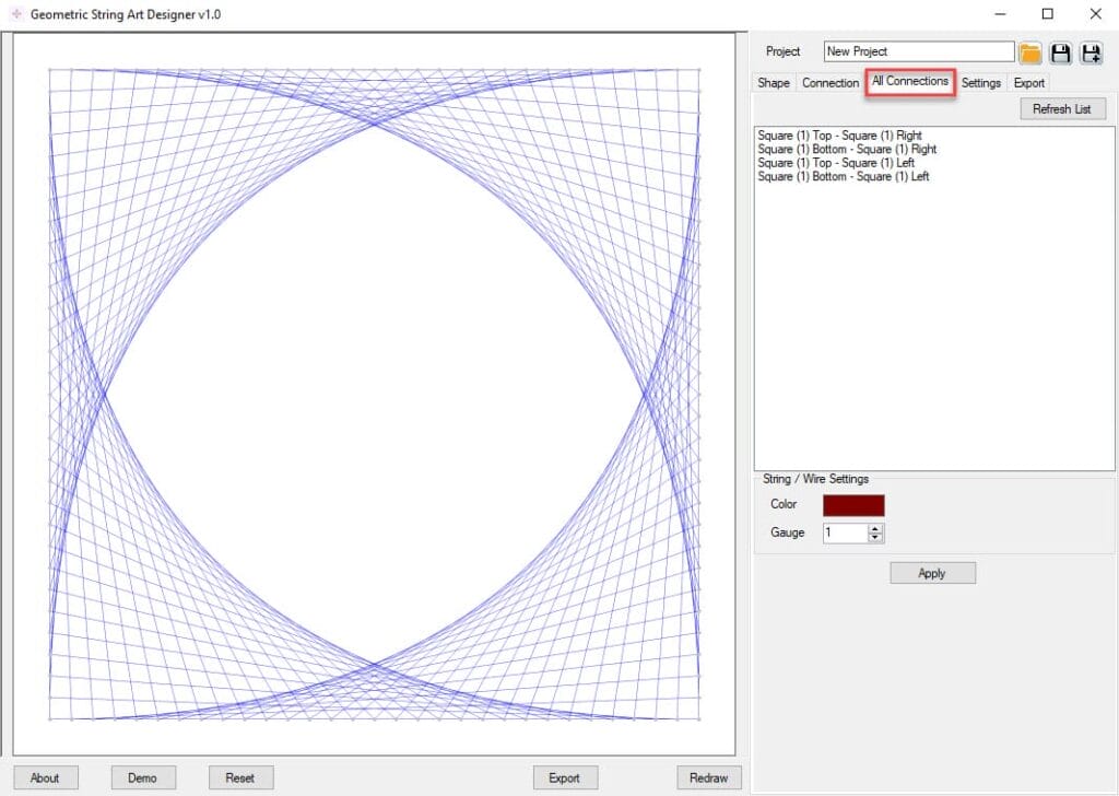 This tutorial will show you how to add connections (the strings/wires) between shapes in Geometric String Art Designer