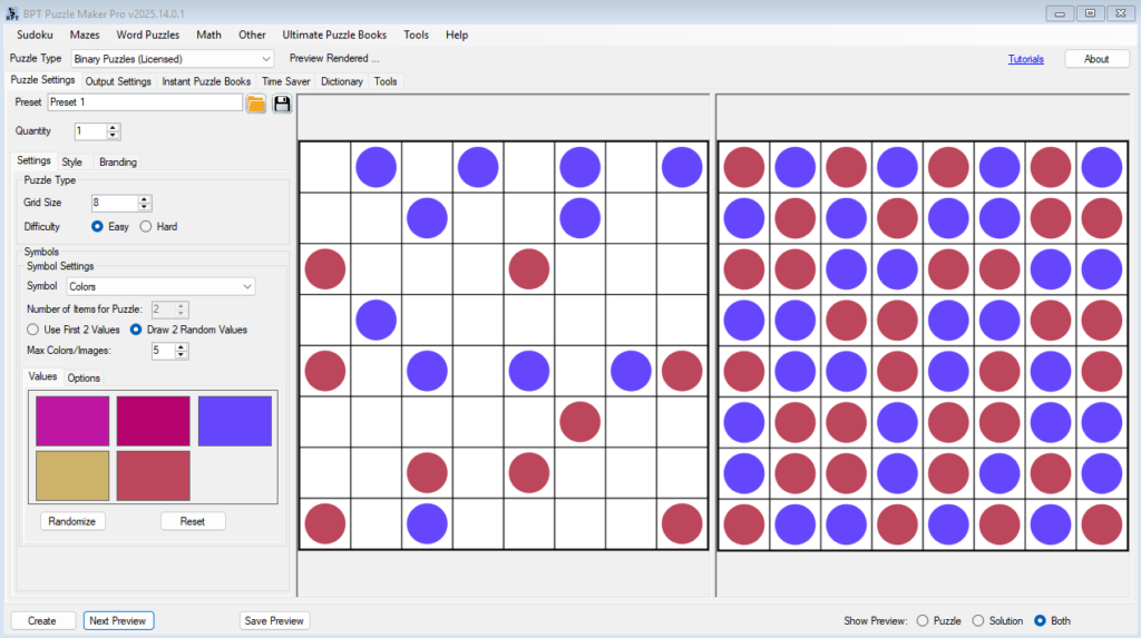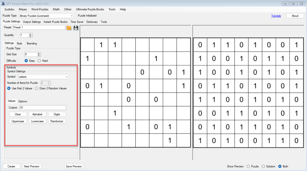 Getting Started with Binary Puzzles in Puzzle Maker Pro