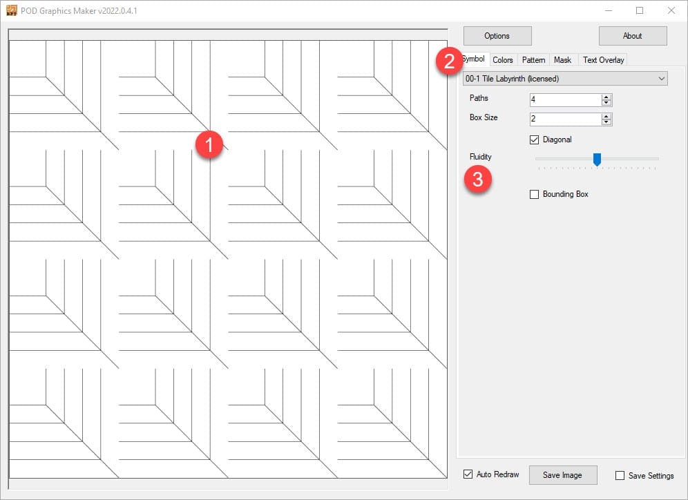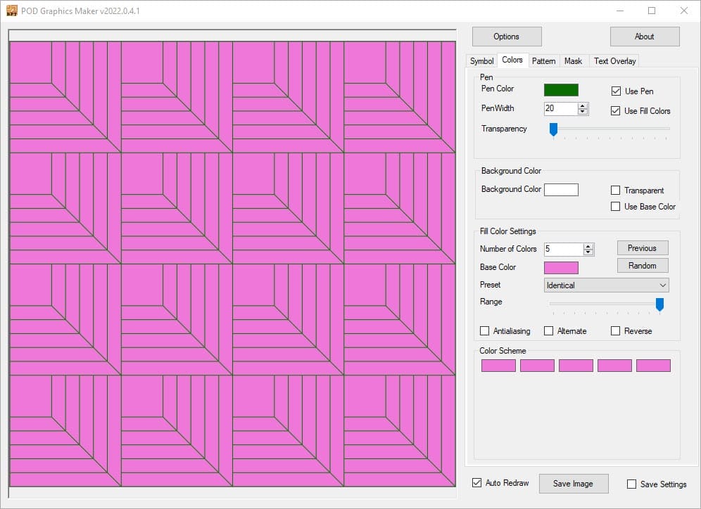 POD Graphics Maker is a quick and easy way to make (mostly geometric) images with only a few presses of a button.