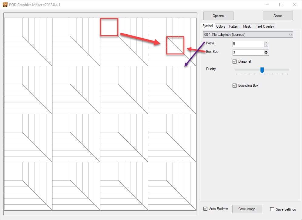 Using the Labyrinth pattern as an example, let’s see what the settings do.