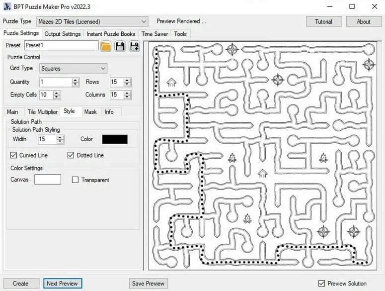 Finally, there’s an option to set the quantity. This is the number of mazes you want to generate when you click the “create” button. The puzzles will be saved in the location you set up using the Output settings in Puzzle Maker Pro
