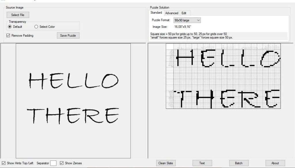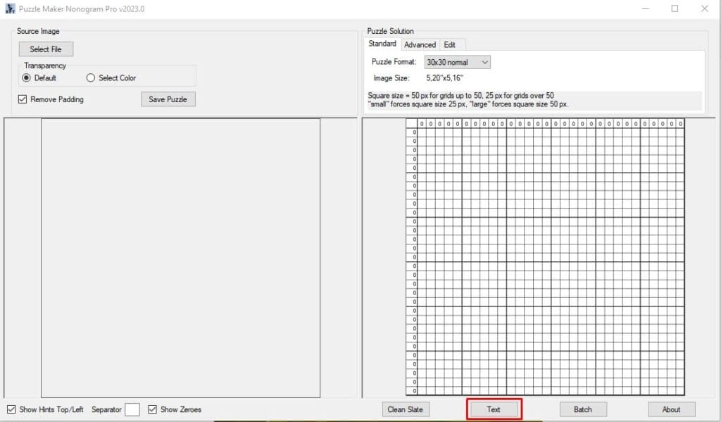 You can turn this off, but there is a chance it’ll become text in a large blank square. You can also fine-tune the puzzle a bit more manually. For information on how to do that, check out our tutorial on how to use the advanced and edit tabs for Puzzle Maker Nonogram