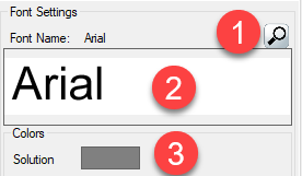 To change the font for your puzzles, click the small looking glass (1) or click the white font preview panel (2). This will open the font setup dialog.
