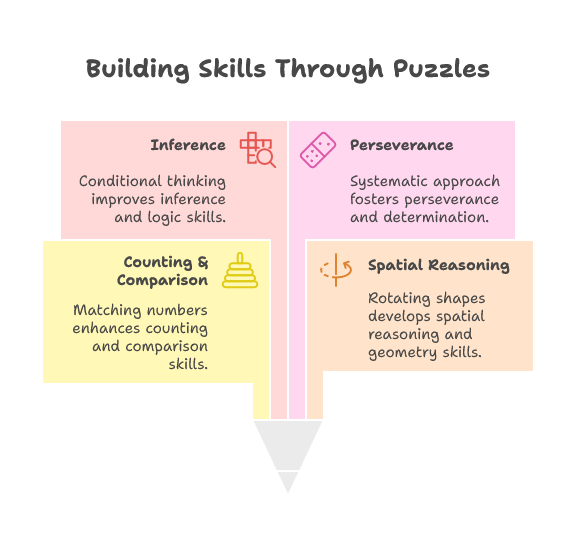 | Inference | “If this square is red, that one can’t be.” They learn conditional thinking without even noticing. |