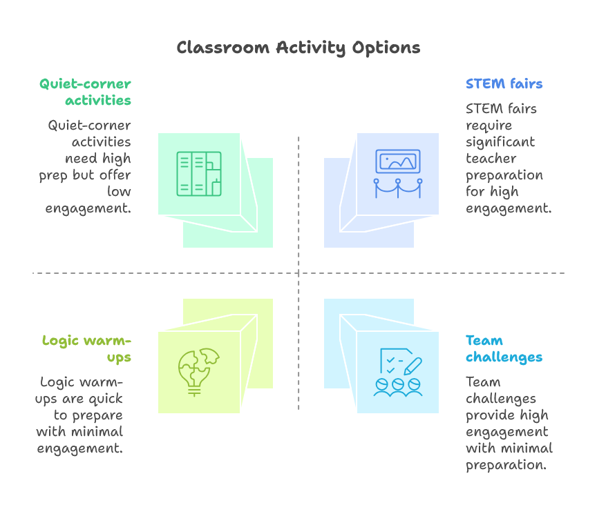 Teachers love puzzles that reuse the same rule set across age levels. A 4×4 animal grid for grade 2 and an 8×8 “space edition” for grade 5 share the same logic base, meaning prep time stays minimal.