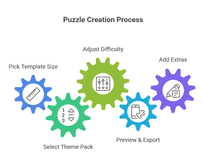 Within minutes, teachers can print classroom sets, and KDP creators can build a full themed puzzle book.