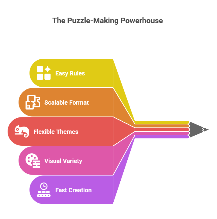 Every new puzzle type feeds the ecosystem: your brand becomes the destination for creative logic puzzles.