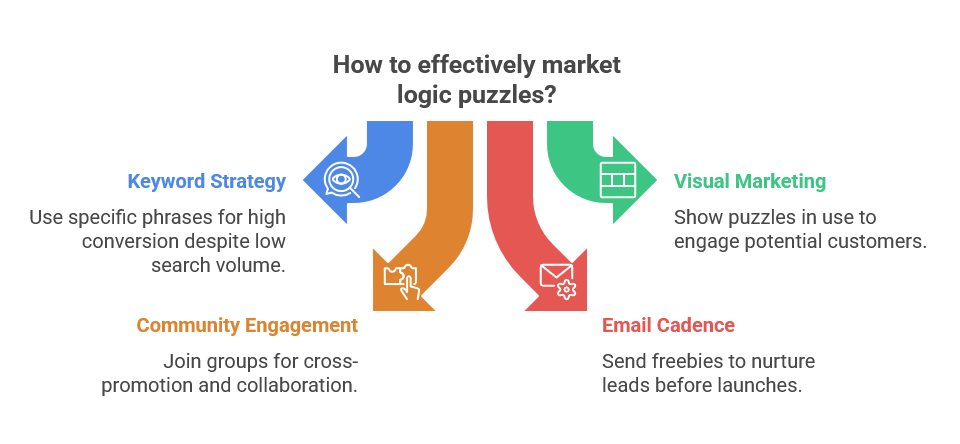 Offer one free puzzle pack on your website (a real “lead magnet”) to build your mailing list. Follow up with paid bundles or seasonal releases.