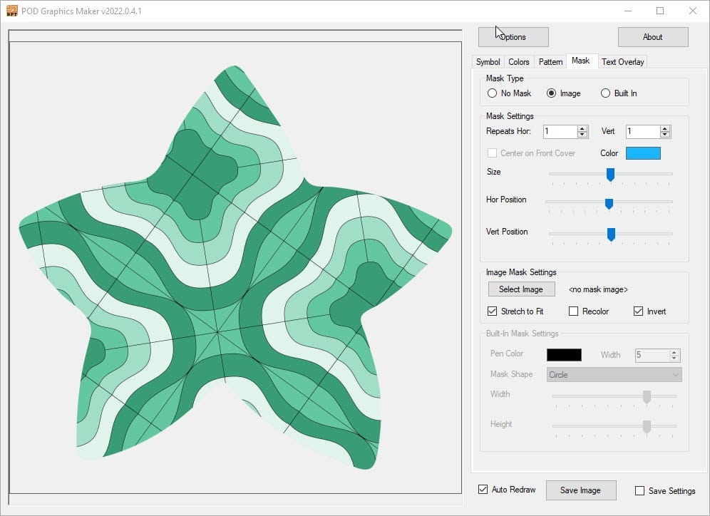 Now let’s play with the other option, the Built In masks. These are unique to POD Graphics Maker, and while they are not quite as unique as custom PNG masks, you can still do some amazing things with these.