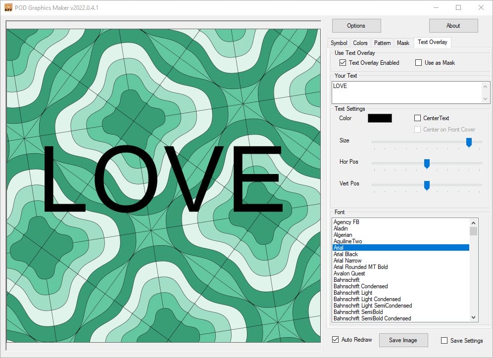 POD Graphics Maker is a quick and easy way to make (mostly geometric) images with only a few presses of a button.