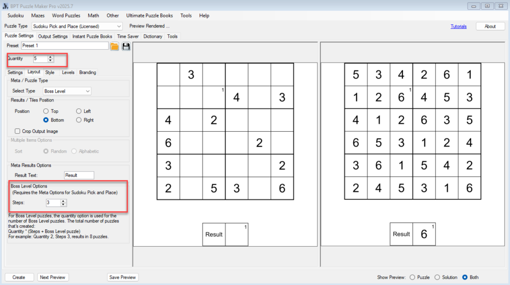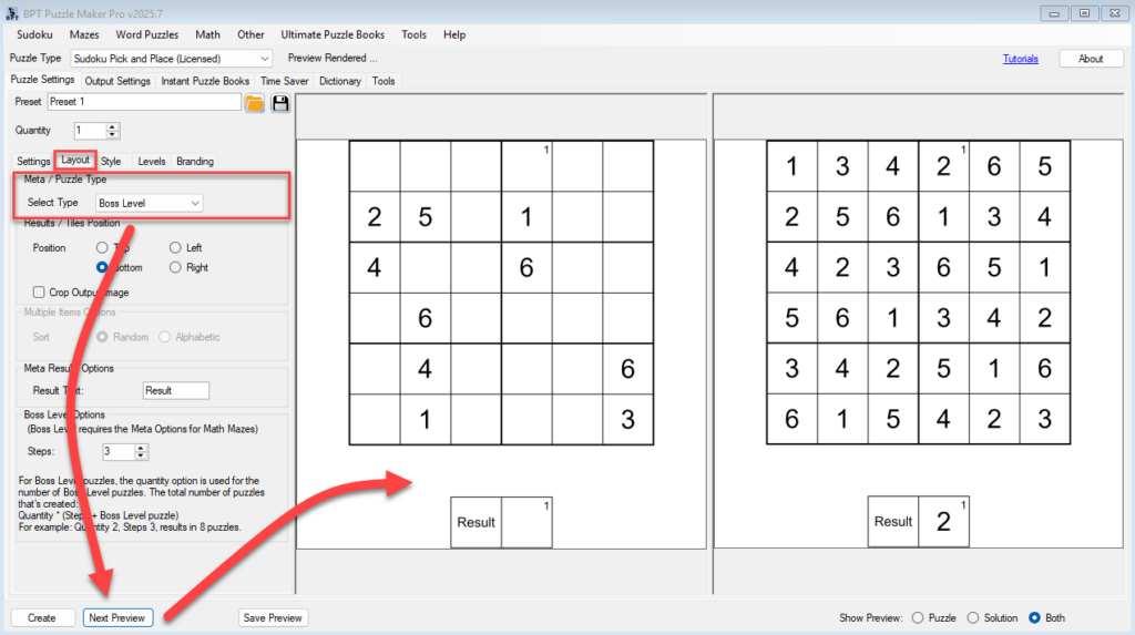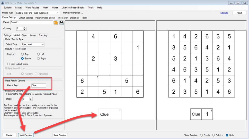 - Click Next Preview to see a sample boss puzzle set