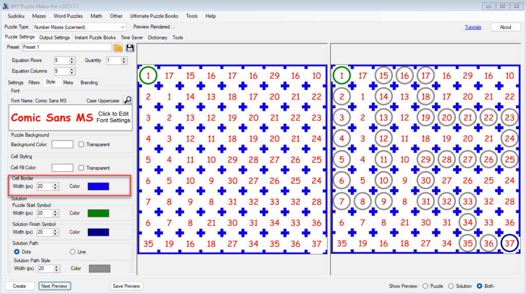 Learn how to customize the look of your Number Mazes — including fonts, line styles, start/finish markers, and path colors — to match your brand, audience, or publishing style.