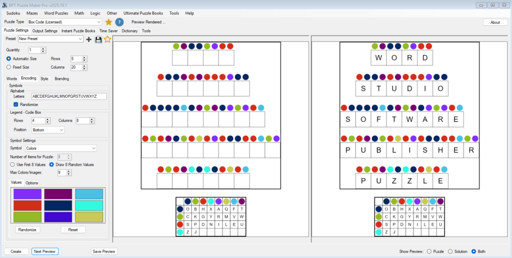 • Batch Creation: For puzzle book creators, the ability to generate dozens or hundreds of puzzles at once is a critical feature. Puzzle Maker Pro allows you to create entire books of Polybius puzzles with a single click, complete with solutions.