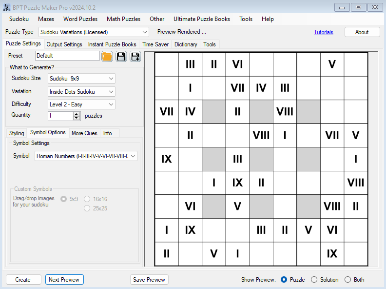 Ease of UseIt’s easy to use – all our sudoku modules are available in the Sudoku Variations module in Puzzle Maker Pro. You can select your licensed variations or demo the other variations before purchase.