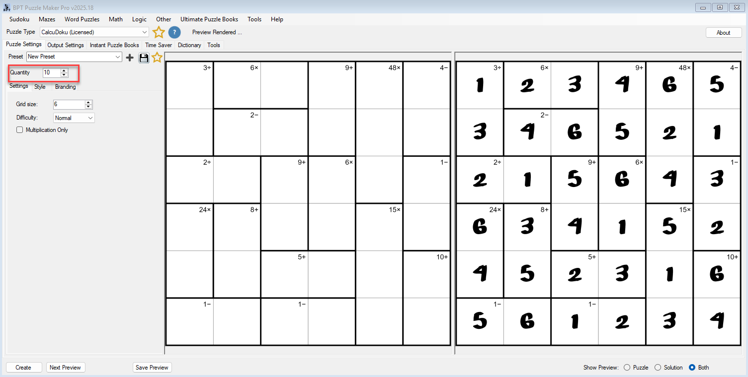 With Puzzle Maker Pro – CalcuDoku, you can generate fully customizable math logic puzzles for classrooms, puzzle books, or personal projects — from simple 3×3 grids to complex 9×9 challenges.
