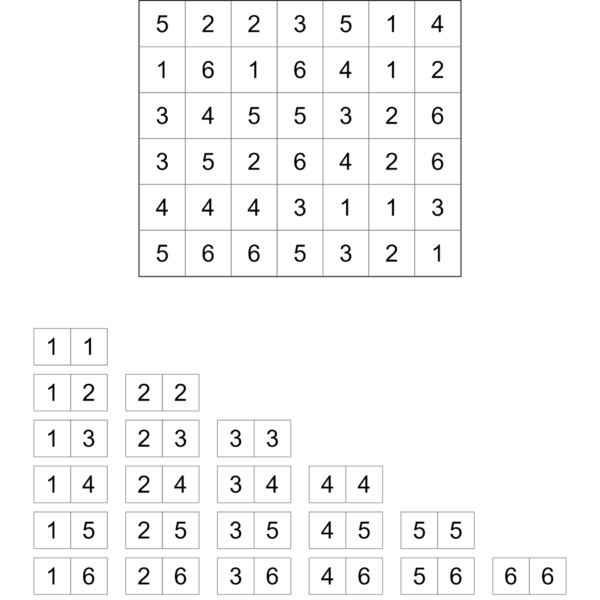 Find the hidden dominoes — or design them — using numbers, letters, colors, or even images.