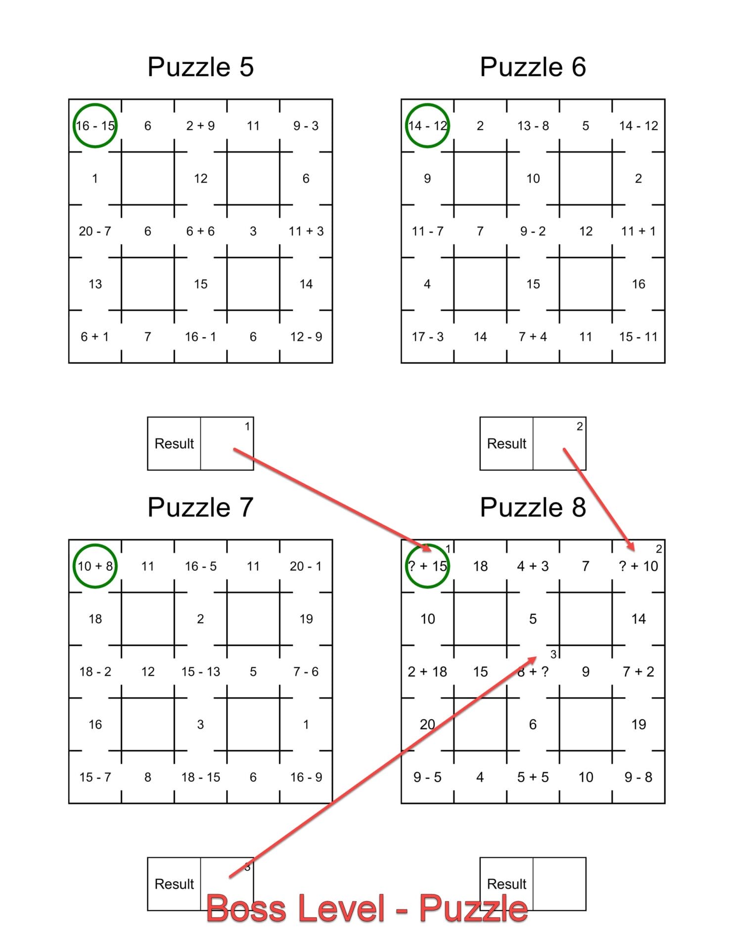 - Combine 2 to 5 puzzle results into one “final boss” puzzle.