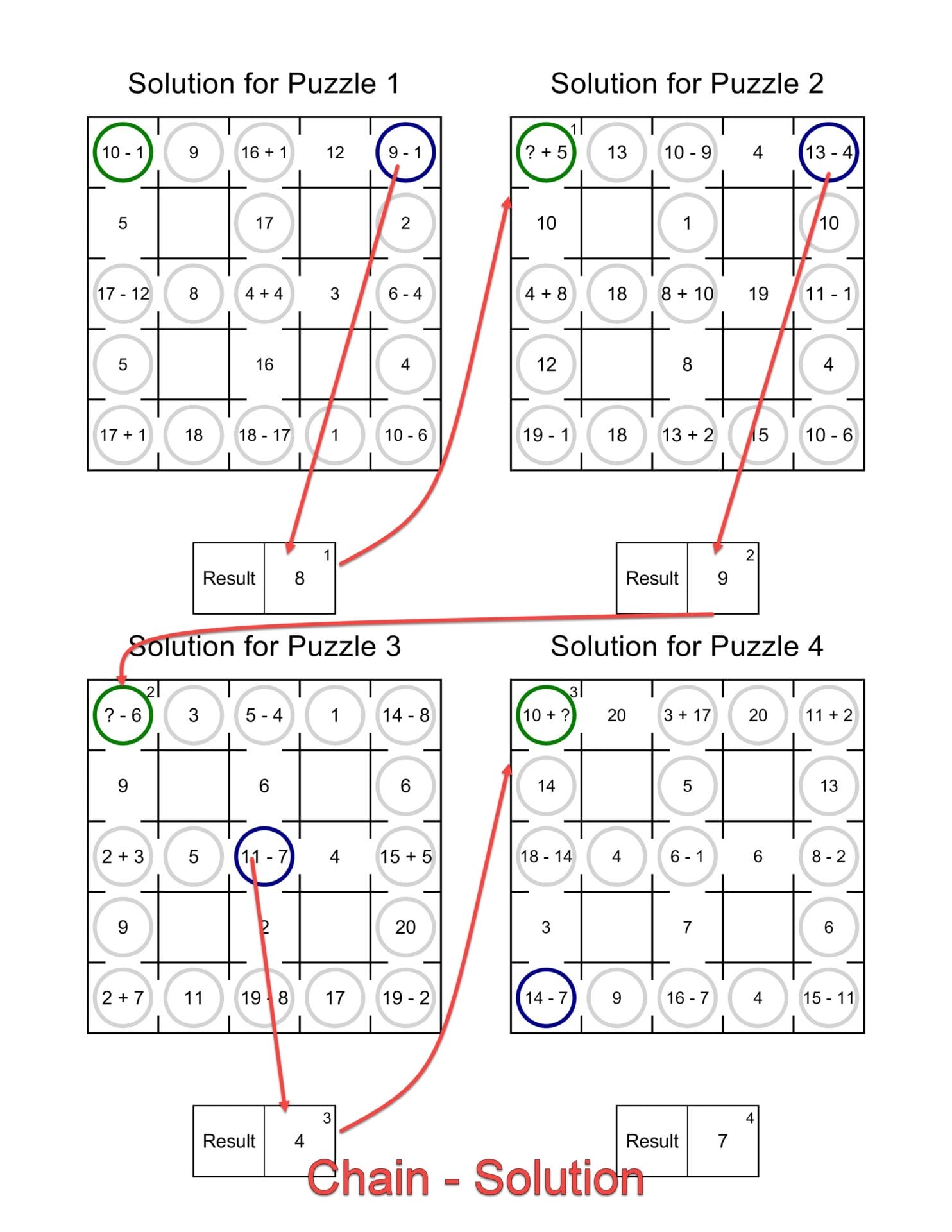 - The result of Puzzle 1 becomes part of Puzzle 2.
