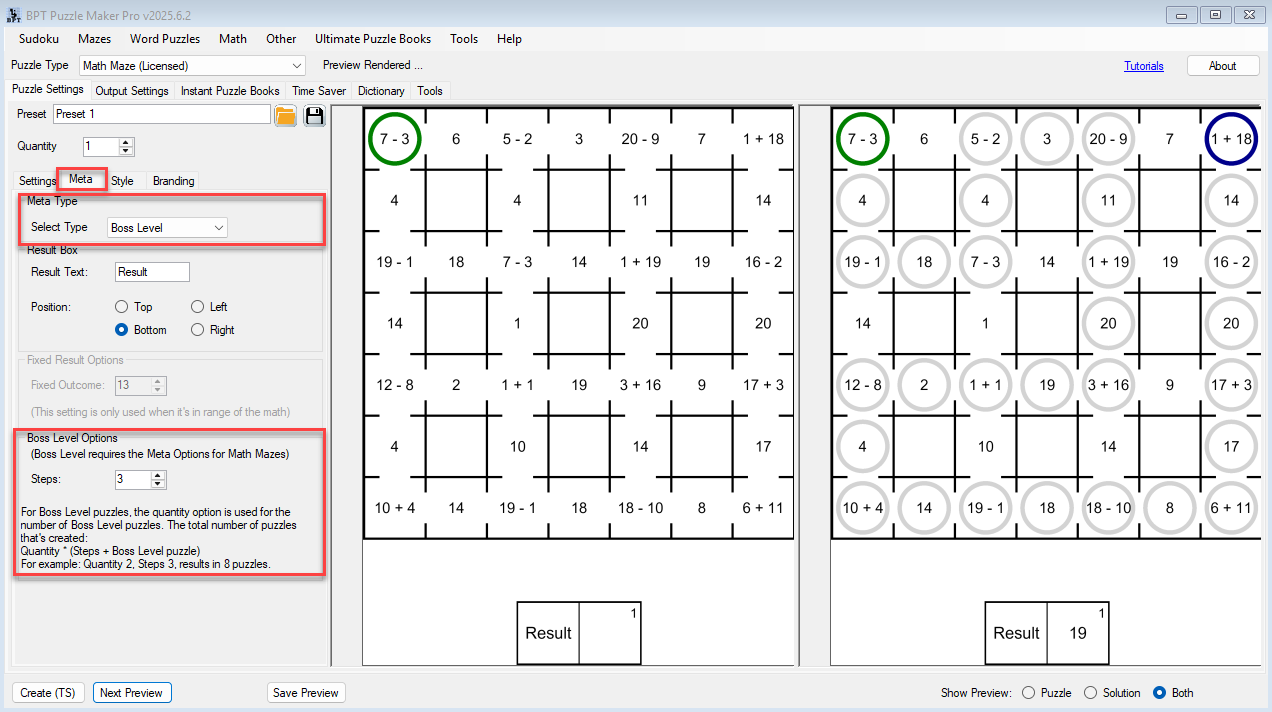 The Meta Puzzle Add-On for Puzzle Maker Pro – Math Maze lets you link multiple puzzles together — either in sequence (“Chain Mode”) or into a single climactic challenge (“Boss Level”).
