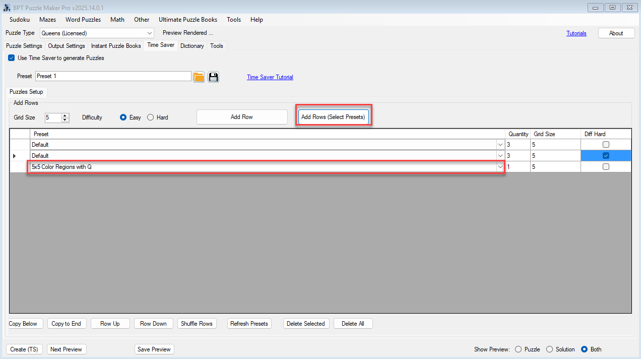 - Use Time Saver (Creator Edition) to generate all 100 puzzles + solutions