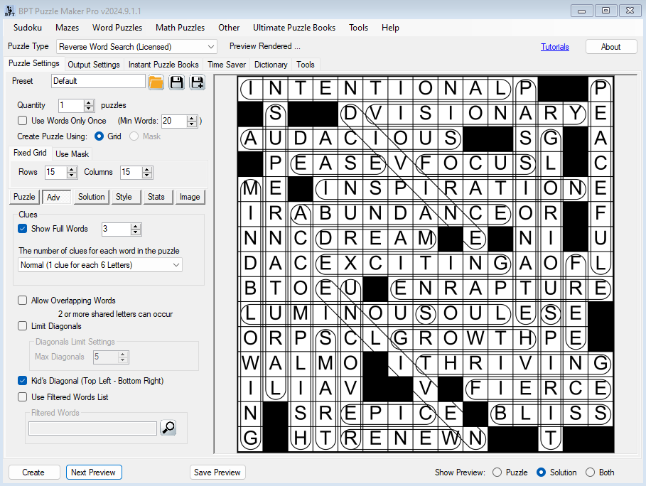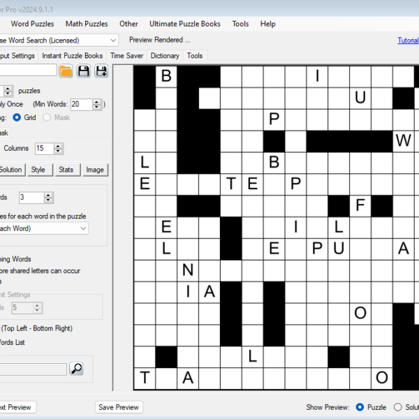 Try It Today – Free Demo AvailableCurious? Test-drive the software with our free demo and see how Reverse Word Search can add a unique twist to your puzzle collection. Start creating your puzzles now! |