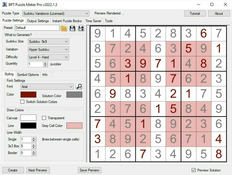 DescriptionIntroducing Puzzle Maker Pro – Sudoku 9×9 Variations: Experience Exciting New Sudoku Challenges Dive into a world of intriguing sudoku variations with Puzzle Maker Pro – Sudoku 9×9 Variations, an advanced software designed to create captivating Sudoku X and Hyper Sudoku puzzles and books. Equipped with all the features of Sudoku 9×9 Creative, this edition also allows you to use numbers, letters, Roman numerals, or custom clipart to further enhance your sudoku creations. Key Features: