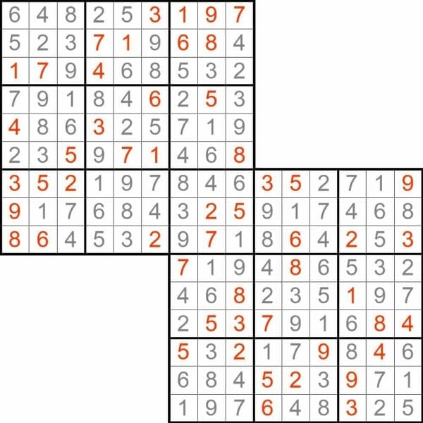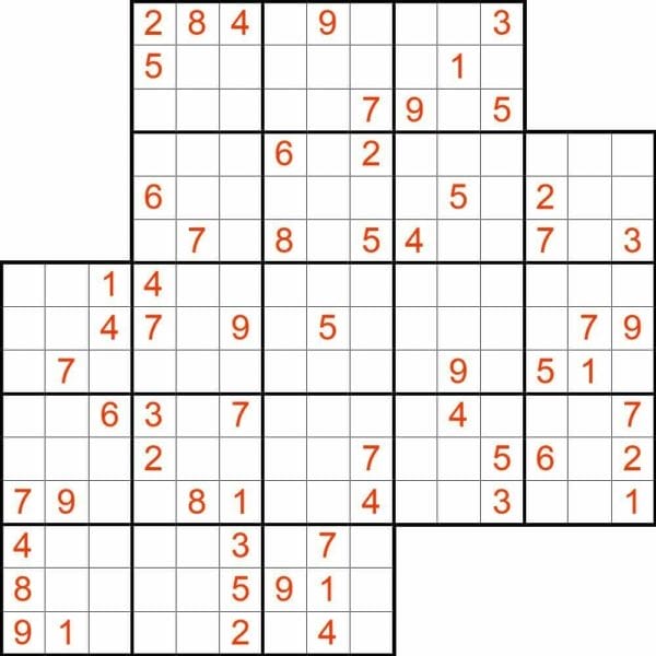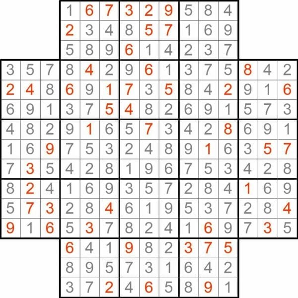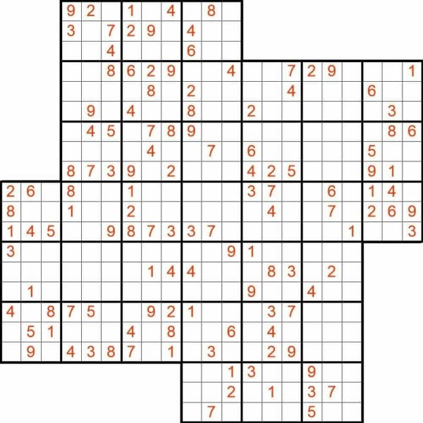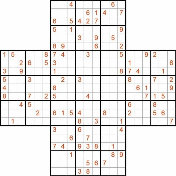 Cross SudokuFive Overlapping Sudokus | Windmill SudokuFive Overlapping Sudokus | 7 Difficulty LevelsCreate puzzles with 7 (!) different difficulty levels, ranging from Very Easy to Extreme | Balanced LevelsDifficulty levels have been balanced and calibrated, see our F.A.Q. |