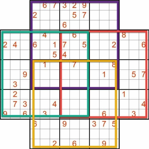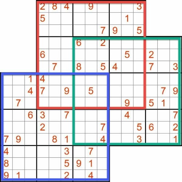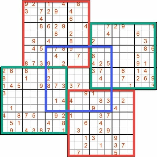 Five Sudoku TypesCreate five new Sudoku variations: Sensei, Gattai, Flower, Cross and Windmill | Sensei SudokuTwo overlapping sudokus | Gattai SudokuThree Overlapping Sudokus | Flower SudokuFour Overlapping Sudokus |
