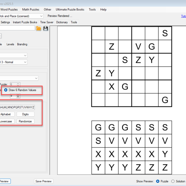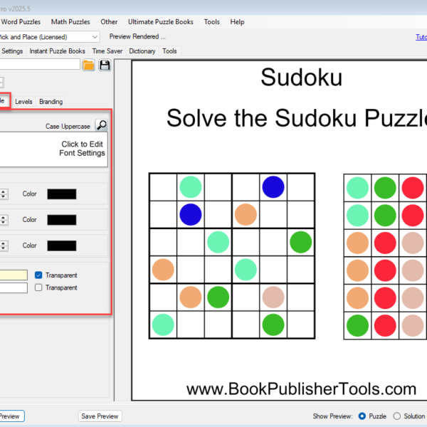 Create sudoku puzzles with built-in tile sets for hands-on interaction and visual variety. Supports numbers, letters, colors, and full styling control — perfect for printables, POD books, and educational content.Puzzle Maker Pro – Sudoku Pick and Place