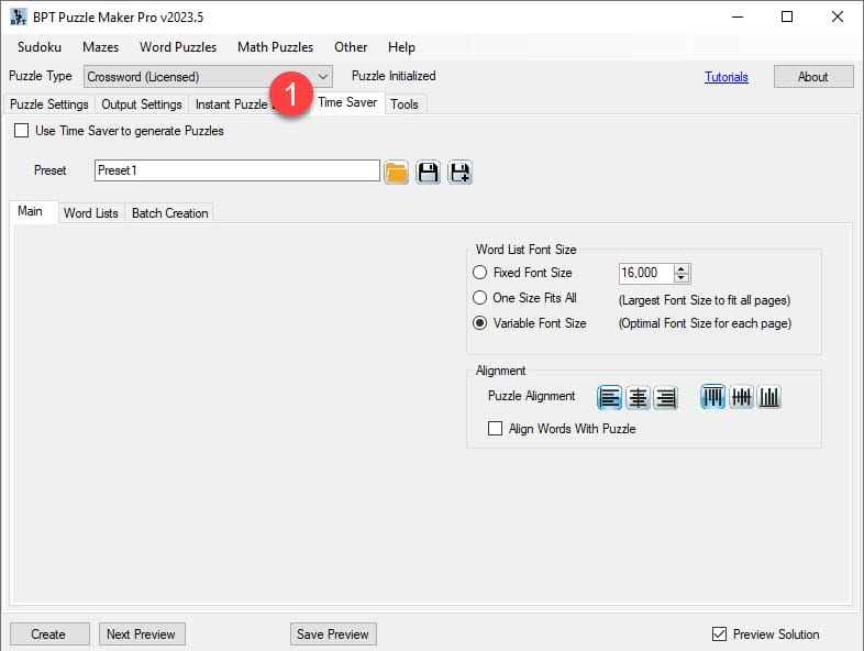 The time saver does exactly what it says on the tin: It saves you time. It does so by allowing you to batch create puzzles. You get less control over the details, but if you have your lists set up, you can create puzzles much faster than if you did it manually.