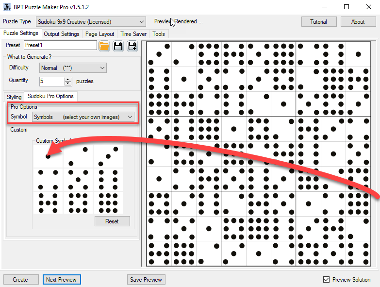 A quick example: Let’s say you create a Sudoku 9×9 puzzle, the puzzle size is set to 1800 pixels. 1800 pixels at 300 DPI means a puzzle size of 6″.