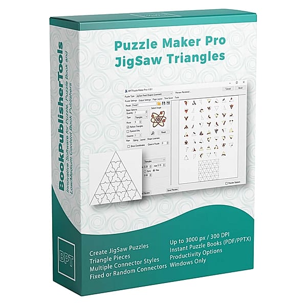 DescriptionEverybody knows jigsaw puzzles, and now you can easily create them! Use the puzzles for your activity books, puzzle books, website downloads, or even Facebook memes or other promotional messages. Simply import your image – any image that you want to use, in JPG or PNG format – and click preview, to see quick results. Then play with the puzzle settings and styling options to create the perfect jigsaw puzzle for you. Create your own paper Jigsaw puzzles or activity pages. These puzzles can be used to copy, draw and color, or to color, cut out the puzzle pieces. You can select and configure which connector type to use – none, triangle, square and true jigsaw style You can even randomize the connector size and position, to completely change the look and feel of each puzzle This Puzzle Maker Pro module creates circular jigsaw puzzle pieces, other modules can create triangle, hexagon and square puzzle pieces. | Ease of UseClick on the image place holder to select the image you want to use, or drop your image onto it. Click “Preview” to quickly see results. Change the number of rows and columns to customize your results, select whether or not you want to print coordinates, and set other style options. Click “Create” to create 1 or more puzzles, that will be saved on your computer. If you want to create puzzle books or puzzle book pages, just select the right layout options before you click “Create” But there’s more: You can use any TrueType font that’s installed on your computer, change colors, line weight, and more, to create jigsaw puzzles in your own unique style. By using the Preview button, you can see a jigsaw puzzle and solution with the new style right away. Like any Puzzle Maker Pro module, Jigsaw Circles will create the puzzles and solutions as image files (JPG or PNG) at 300 DPI on your computer. Lightning fast. Immediate AccessYou can use the software right away. Just download and install the newest version of Puzzle Maker Pro from the member area, and start creating your puzzles and puzzle books. Free Demo VersionExperience the power Of Puzzle Maker Pro – JigSaw Circles with our free demo version. Please note that puzzles And solutions In the demo version will be watermarked. You can test all features and puzzle types. If you want to try out the Time Saver Add-On, please contact support. Note: Sales for Puzzle Maker Pro products are final. We strongly suggest to test compatibility with your Windows PC configuration before purchase. |