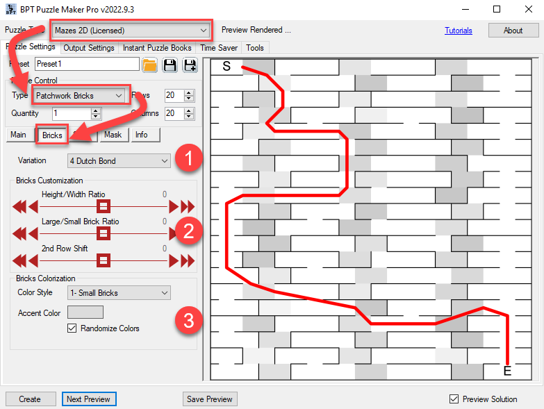 This tutorial applies to Puzzle Maker Pro – Mazes 2D Patchwork Bricks.