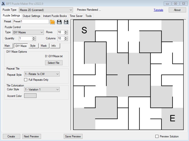 Just like other Puzzle Maker Pro modules, it’s best to play around with the settings, generate previews of the mazes, and find settings that fit your style. Don’t forget to save these settings as presets, for later reuse!