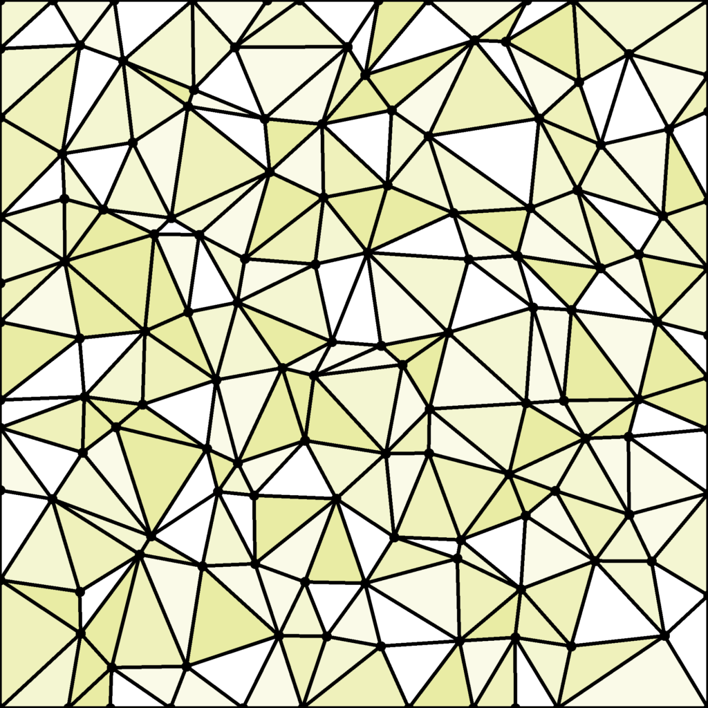 In this example image, the dots are placed randomly. The black lines connect the dots that are closest to each other, resulting in triangles.
