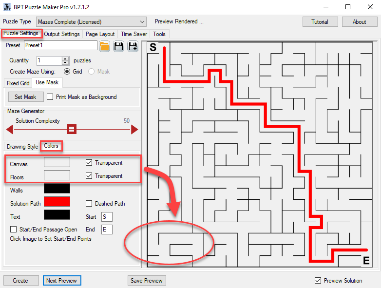 The next step is to set the specific Maze colors on the Puzzle Settings / Colors tab.